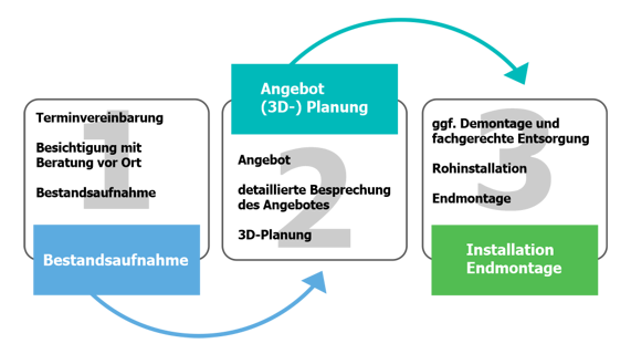 Die effektive Planung Ihres neuen Badezimmers teilt sich bei uns in drei Abschnitte.